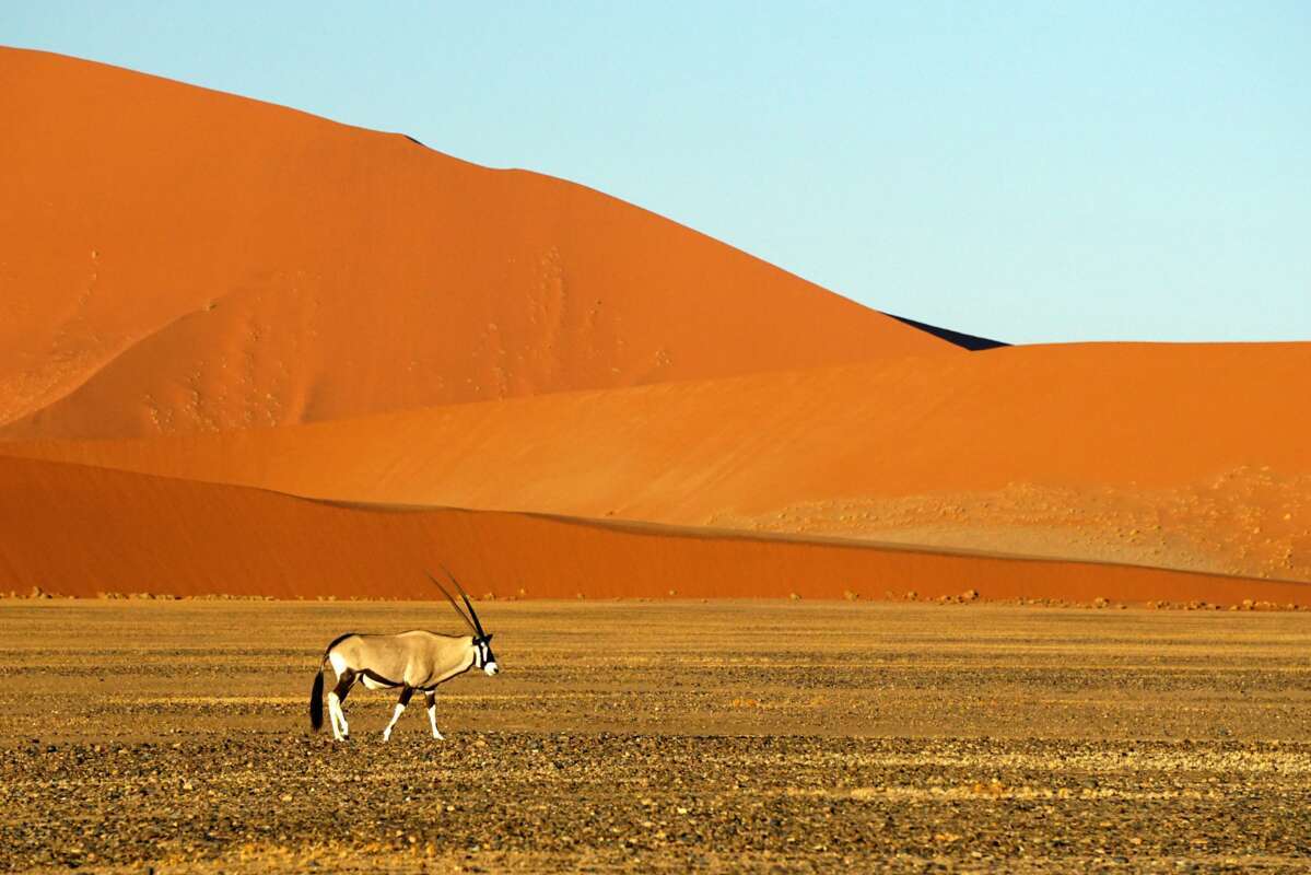 4. TAG: NamibRand. Früh am Morgen brechen Sie zu den atemberaubenden roten Dünen von Sossusvlei auf. Bei der Erklimmung der Dünen geniessen Sie einen unvergesslichen Ausblick. Danach fahren Sie mit einem Geländefahrzeug ins Deadvlei – eine Lehmpfanne, die sich durch dunkle und abgestorbene Kameldornbäume auf dem weissen Pfannenboden auszeichnet. Bei der Ausfahrt aus dem Park machen Sie noch einen Stopp am Sesriem Canyon. Übernachtung Adventure Camping (FMA) Bronze Bushman's Desert Lodge o. ä. (FMA)