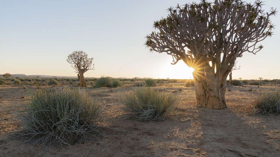 2. TAG: Kalahari–Fish River Canyon. (± 440 km). Die heutige Etappe führt Sie zum eindrucksvollen Köcherbaumwald. Weiterreise zum Fish River Canyon. Übernachtung Canyon Village o. ä. (F)