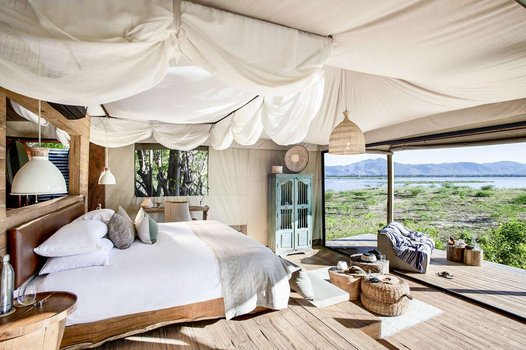 Die 6 luxuriösen Zeltchalets sind offen und luftig gestaltet mit bequemen Betten, Sitzgelegenheiten, en-suite Badezimmer mit Innen - und Aussendusche. Zusätzlich hat jede Suite einen grossen Aussenbereich mit Sitzecke, schöner Terrasse und kleinem, privaten Plunge Pool. Der Hauptbereich bietet eine Lounge, Bar und Essbereich mit „Boma“ für den abendlichen Drink am Lagerfeuer sowie einen Pool. Beim Bau wurde auf ökologische Gesichtspunkte geachtet und so wird das gesamte Camp von Solarstrom versorgt.