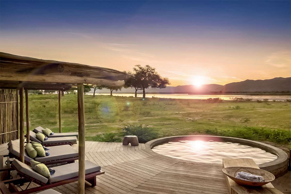 Der Hauptbereich liegt direkt am Rande des Flussufers und bietet eine offene "Boma" (Feuerstelle), Infinity-Pool und eine kleine Bibliothek (WLAN). Zur Entspannung stehen darüber hinaus ein Fitnessraum und ein Spa-Bereich zur Verfügung. Verbringen Sie den Abend mit einem erfrischenden Sundowner-Drink, während Sie den herrlichen afrikanischen Sonnenuntergang beobachten, und tauschen Sie am Feuer in der gemütlichen Boma Geschichten über Ihre Safari aus, bevor Sie ein afrikanisch inspiriertes Feinschmeckermenü geniessen.