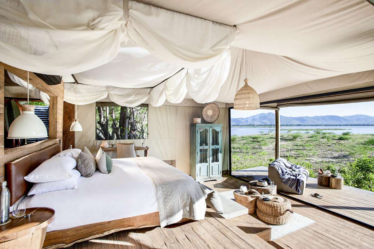 Zu den Aktivitäten gehören Wanderungen, Pirschfahrten, Kanusafaris und Fischen. Das edle Nyamatusi Camp liegt direkt am Ufer des mächtigen Sambesi-Flusses. Viele Tiere bewegen sich hier nah um das Camp und so beginnt Ihre Safari oftmals schon von der eigenen Terrasse aus!