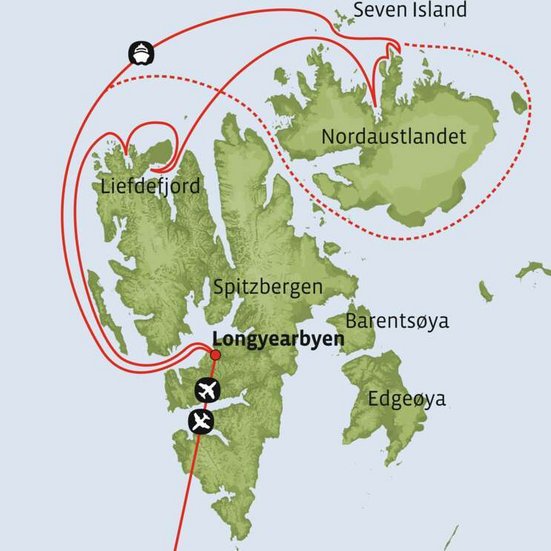 Hinweis: Die Tage im äussersten Norden sind reine Expeditions-Seetage. Das Programm kann je nach Wetter- und Eisverhältnissen sowie Tiersichtungen angepasst werden. Möglicherweise fährt die MS Hondius weiter entlang der Küste Nordaustlandets ostwärts Richtung Kvitøya oder nordwärts bis über den 81. Breitengrad.