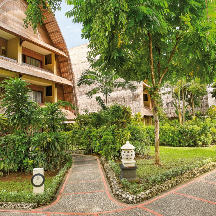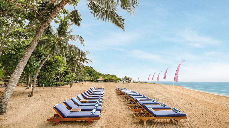 Die Anlage im traditionellen Stil erinnert an ein balinesisches Dorf, direkt am Sandstrand von Sanur gelegen. Hier erwartet Sie die Breeze Bar mit exotischen Drinks und köstlichen Snacks.