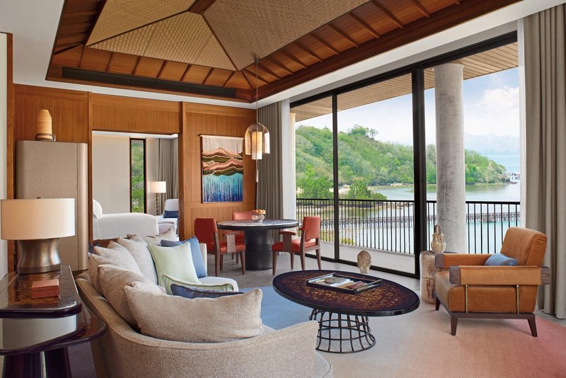 - 151-200 qm, Villa, Meerseite, Meerblick, Nichtraucher, kombinierter Wohn-/Schlafraum, kombinierter Wohn-/Essraum, Sitzecke, Couch, Badewanne, bodengleiche Dusche, WC, Bademantel, Badeslipper, Haartrockner, Kosmetikspiegel, Klimaanlage, Minibar kostenpflichtig, Safe (kostenpflichtig), TV, Wasserkocher, Terrasse (teilweise überdacht), Butlerservice, Aufdeck-Service, Panoramafenster, bodentiefe Fenster