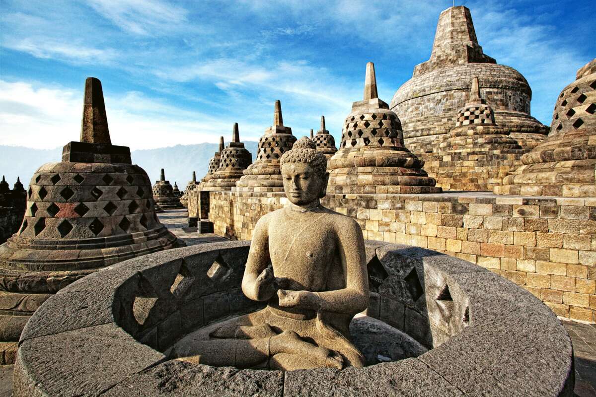 Bestaunen Sie die beeindruckenden Ruinen einer hinduistischen Tempelstadt auf dem Dieng-Plateau, die buddhistische Tempelanlage Borobudur und den farbenprächtigen Sonnenaufgang auf dem Mount Bromo.