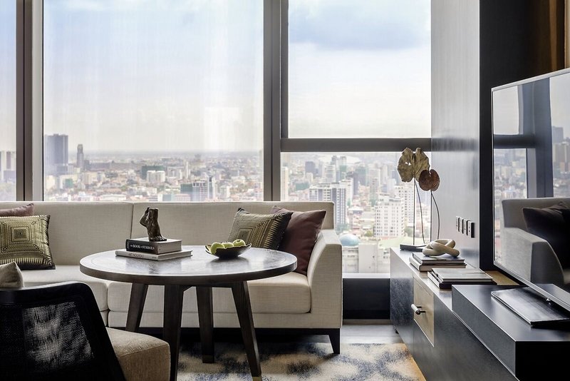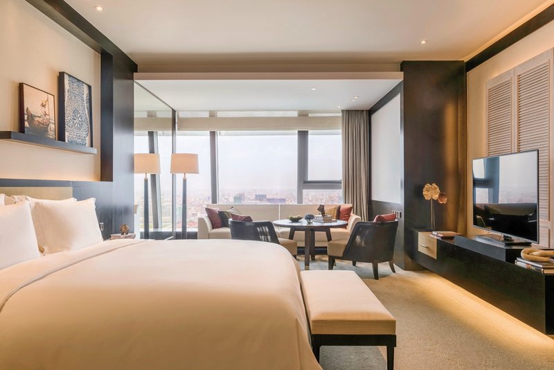 • 61-70 qm, Doppel, Stadtblick, kombinierter Wohn-/Schlafraum, 1 Doppelbett (Kingsize), 1 Bad, Dusche, Badewanne, 1 WC, Bademantel, Badeslipper, Haartrockner, Klimaanlage, individuell regulierbar, Minibar, Safe, TV (Flachbildschirm), Musikanlage, Bluetooth-Lautsprecher, WLAN, Kaffeemaschine, Anzahl Zimmer: 14