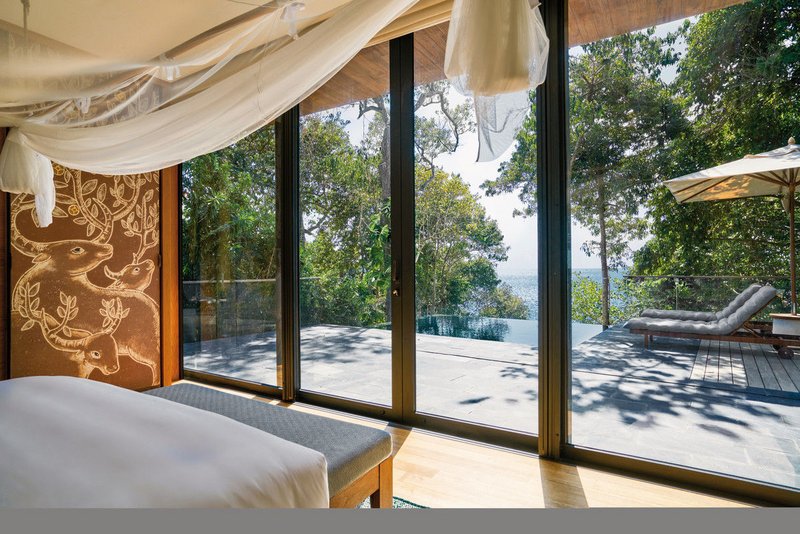 Die Zimmer: Die 40 Pool Villen sind aus nachhaltigen Materialien erbaut und bieten jeglichen Komfort sowie modernste Technologie. Sie verfügen über eine Terrasse mit privatem Pool, bodentiefe Fenster, Bad mit freistehender Badewanne, Kingsize-Bett und Tagesbett (außer Ocean Pool Villa), Satelliten-TV, Telefon, WLAN (ohne Gebühr), Bluetooth Lautsprecher, Safe, Minibar, Teezubereiter und Espressomaschine, 24-Stunden-Butler-Service.