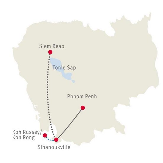 Nach dem intensiven Kulturerlebnis Angkor bezaubern die Strände Kambodschas: absolute Inselträume. Der Abschluss macht die charmante Hauptstadt.