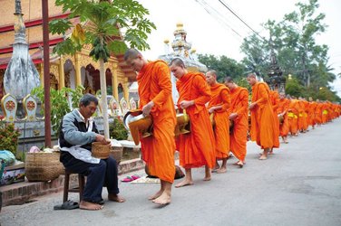 Heute heisst es früh aufstehen: Barfuss und in absoluter Stille ziehen die Mönche in einer eindrucksvollen Prozession durch die Strassen der Stadt und nehmen Almosen entgegen. Ihre Reiseleitung wird Sie in die Tradition einweihen. Per Boot reisen Sie zu den Höhlen von Pak Ou. Auf dem Rückweg bewundern Sie die lokale Reiswein Herstellung. Dem Angebot auf dem farbenprächtigen Hmong Markt ist schwer zu widerstehen.