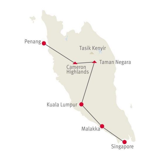 Auf dem Weg in den grössten Nationalpark des Landes passieren Sie die Genting Highlands. In Kuala Tahan steigen Sie in ein Boot um und überqueren den Fluss.