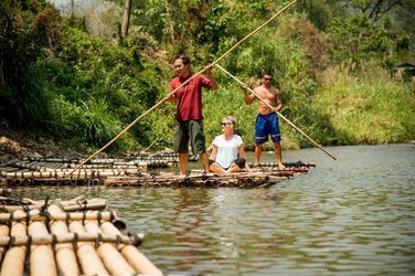 Entlang wunderschöner Landschaft geht die Fahrt im Pick-up Truck zur Lisu Lodge. Sie wandern in kleinen Etappen, meist auf Dschungelpfaden bergwärts und besuchen unterwegs verschiedene Dörfer und Bergstämme und erhalten so Einblick in deren traditionelle Lebensformen, die die Bewohner gut bewahren konnten. Zurück zur Lodge geht es mit dem Bambusfloss auf dem Mae Taeng Fluss.