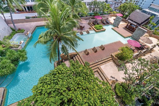 Hier verschmelzen thailändische Tradition und moderner Komfort zu einem besonderen Urlaubserlebnis. Auf der schönen Terrasse am Pool lässt es sich nach Ausflügen in die Stadt wunderbar entspannen.