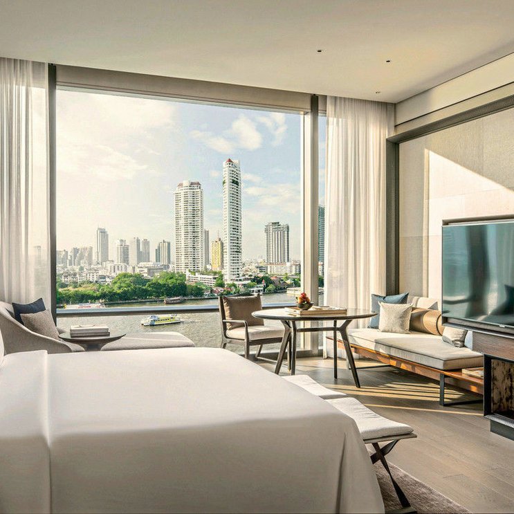 Kulinaria: Der renommierte Sternekoch Andrea Accordi zeichnet verantwortlich für authentische kantonesische Gerichte im Yu Ting Yuan, moderne italienische Küche im Riva del Fiume mit Terrasse und Showküche, Fisch- und Meeresfrüchte-Spezialitäten in der am Flussufer gelegenen, französisch-inspirierten Brasserie Palmiere mit Terrasse, kleinere Gerichte und Snacks im Poolside Dining. Ergänzt wird das kulinarische Angebot durch das Cafe Madelaine, The Lounge in der Lobby und den BKK Social Club.