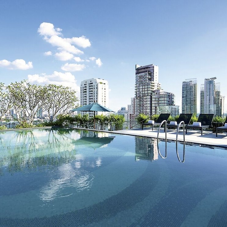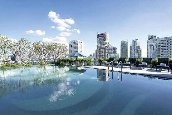Eine komfortable und sogar behagliche Adresse als Basis für Ihre Entdeckungstouren in Bangkok! Lassen Sie sich auf keinen Fall den fantastischen Ausblick vom Pool in der 19. Etage entgehen!