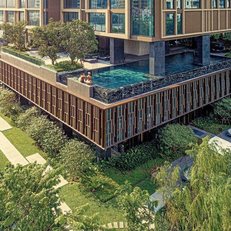Die Zimmer: In den 362 Zimmern und Suiten des Hotels spielen organische Materialien und traditionelles thailändisches Kunsthandwerk mit der modernen, gradlinigen Architektur des Hotels. Die Zimmer bieten luxuriöse Atmosphäre für ein designorientiertes Publikum. Zu den Annehmlichkeiten gehören eine Nespressomaschine, Bademantel, Soundsystem und eine Yogamatte.