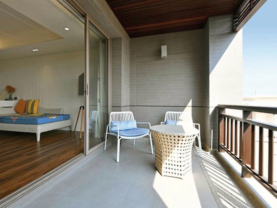 - 46-50 qm, Bettwäsche, Handtücher und Matratzen aus 100% Bio-Baumwolle, Dusche, WC, Bademantel, Haartrockner, Klimaanlage, TV (Sat-TV), WLAN, Kaffee/Tee, Kühlschrank, Balkon