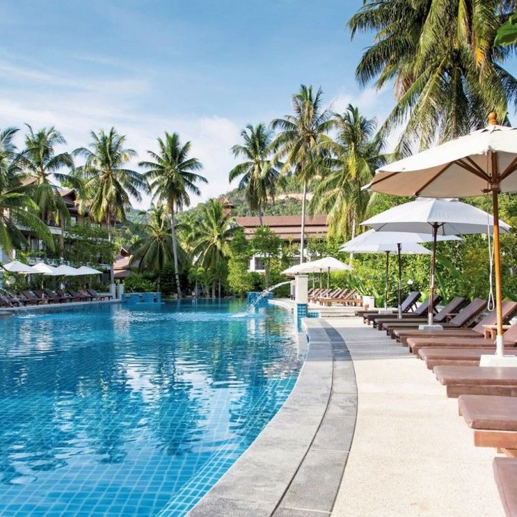 Ein Hideaway fern vom Alltag: Dieses Resort liegt am Mae Haad Beach und offeriert einen Postkartenblick auf die Insel Koh Ma – bildschön! Toll ist auch der sehr große Pool mit Jacuzzi als Strand-Alternative.