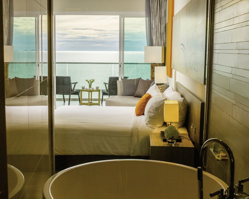 - 101-120 qm, Suite, Meerblick, Allergiker geeignet, 2 separate Schlafzimmer, 1 separater Wohnraum, Sitzecke, Schreibtisch, Dusche, Badewanne, Regendusche, Bademantel, Badeslipper, Haartrockner, Klimaanlage, individuell regulierbar, Minibar kostenpflichtig, Safe, Bügelbrett, Bügeleisen, TV (Smart-TV), Wasserkocher, Espressomaschine, Kaffee/Tee, Balkon, separater Check-in & Check-out, Zutritt zur Club-Lounge, Frühstück in der Club-Lounge, Softdrinks in der Club-Lounge, abends alkoholische Getränke in der Club-Lounge, nachmittags Kaffee/Tee und Gebäck, Snacks am Abend