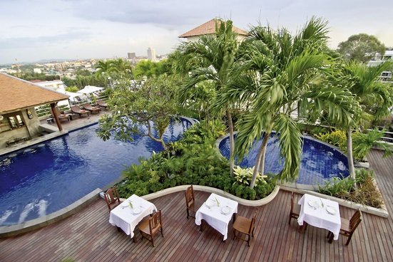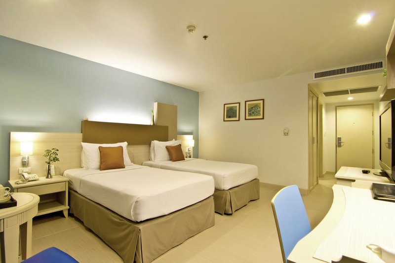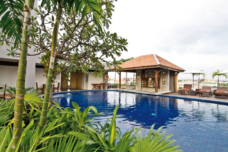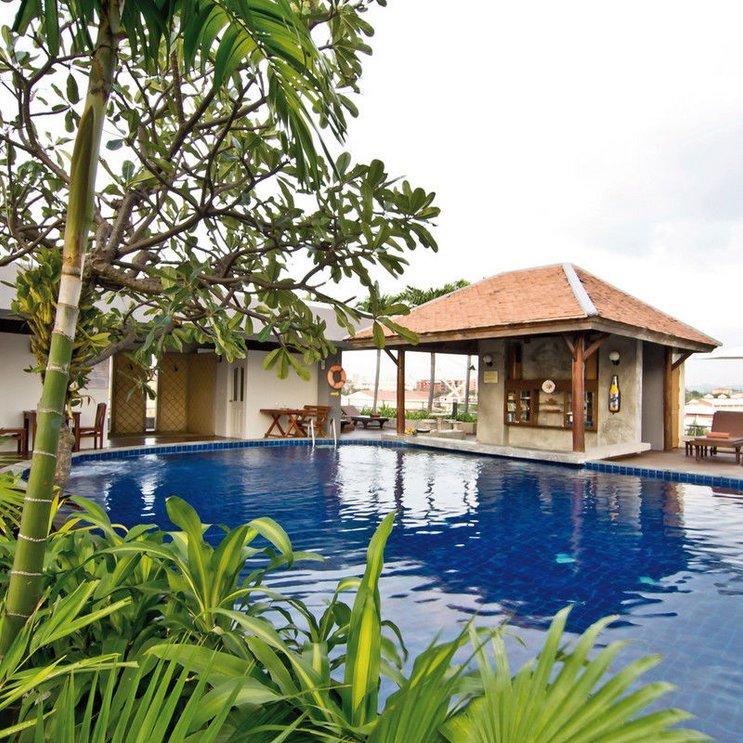 Hier im Herzen Pattayas bieten sich viele Freizeitmöglichkeiten: Der Strand ist einen kurzen Spaziergang entfernt, ein großes Shopping-Center auch! Entspannung verheißen Pool und Bar auf dem Hoteldach.