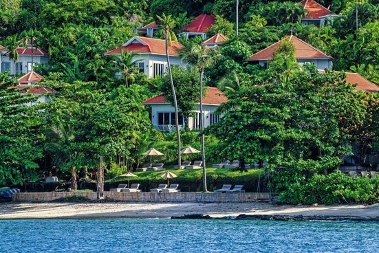 - 121-150 qm, Villa, Erdgeschoss, Buchtblick, Schreibtisch, Dusche, Badewanne, WC, Bademantel, Badeslipper, Haartrockner, Klimaanlage, Minibar kostenpflichtig, Safe, TV (Sat-TV, Flachbildschirm), WLAN, Kaffeemaschine, Kaffee/Tee, Terrasse (möbliert), Privatpool, mit weiteren exklusiven Leistungen, wie 1 Flasche Hauswein pro Wohneinheit und Aufenthalt, täglich 8 Wäschestücke oder Bügelservice pro Aufenthalt kostenfrei, 1 Nachmittagstee am „The Library“ pro Person und Aufenthalt kostenfrei (Vorreservierung erforderlich), 1 Cocktail oder ein Erfrischungsgetränk an der Poolterrasse (13 – 18 Uhr) oder im „The Sun & Moon“ (17:30 – 22:30 Uhr) pro Person und Tag kostenfrei