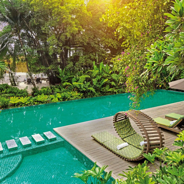 Das Refugium am Ufer des Saigon-Flusses bietet exklusive Villen und Suiten für Ihre Erholung. Entspannen unter einem grünen Blätterdach, umgeben von duftenden Blüten. Ein Paradies nicht nur für Verliebte und Romantiker.