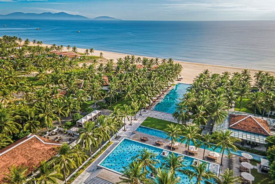 Das Hotel: Die exklusive Villenanlage ist eingebettet in das tropische Grün einer riesigen Gartenanlage am wunderschönen, unberührten Ha-My-Sandstrand. Das Design ist puristisch mit vietnamesischen Elementen und im Einklang mit dem Feng-Shui-Stil. Neben 3 Restaurants und 2 Bars verfügt das Resort über 3 großzügige Swimmingpools (davon einer im Winter beheizt), Wassersportmöglichkeiten, Boutique und einen beeindruckenden Spa- & Wellnessbereich. Kinder von 4 bis 12 Jahren werden im "Chuon Chuon Kids Club" betreut. Die historische Altstadt von Hoi An, die zum UNESCO-Weltkulturerbe ernannt wurde, mit zahlreichen Sehenswürdigkeiten, Geschäften, Restaurants und Bars ist ca. 15 Autominuten (Resort-Shuttle ohne Gebühr), der Flughafen Danang ca. 30 km entfernt.