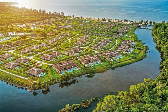 Idealer Ort, um abzuschalten und den Rest der Welt für ein paar Tage zu vergessen: private Pools und abgelegenen Gärten, strohgedeckte Villen, Blick auf Strand und Flussufer sowie Fusion‘s All-Spa-Service.