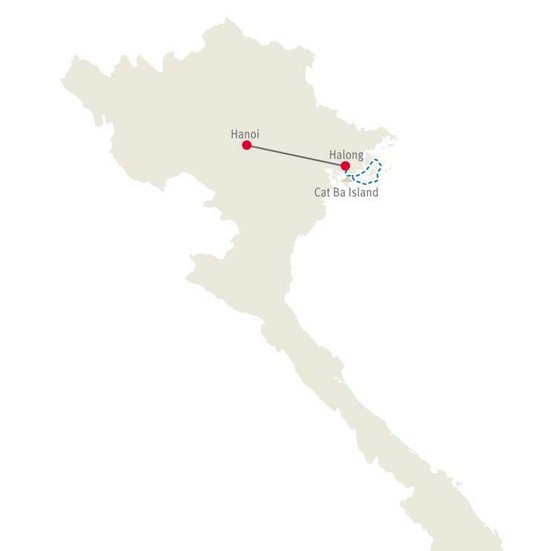 Eine zweistündige Fahrt bringt Sie zur Anlegestelle. Willkommen an Bord der wunderschönen Dschunke Ginger oder Ylang. Schon während dem Mittagessen bewundern Sie die Aussicht. Ein alter französischer Leuchtturm mutet anachronistisch an in dieser spektakulären Landschaft. Das UNESCO-Weltnaturerbe Halong ist zweifellos ein landschaftliches Glanzstück. Dicht an dicht wachsen Kalksteininseln aus dem Ozean. Zeit für den ersten Landgang auf der Insel Cat Ba: Mit dem Fahrrad besuchen Sie ein Dorf, wo Sie einen spannenden Einblick in den Alltag erhalten. Alternativ steht ein Elektrowagen zur Verfügung. Zurück an Bord ist der Küchenchef bereit, Sie näher mit der vietnamesischen Küche bekannt zu machen. Nach dem Abendessen geniessen Sie im Pop-up-Kino einen Film oder lassen den Abend an der Bar ausklingen.