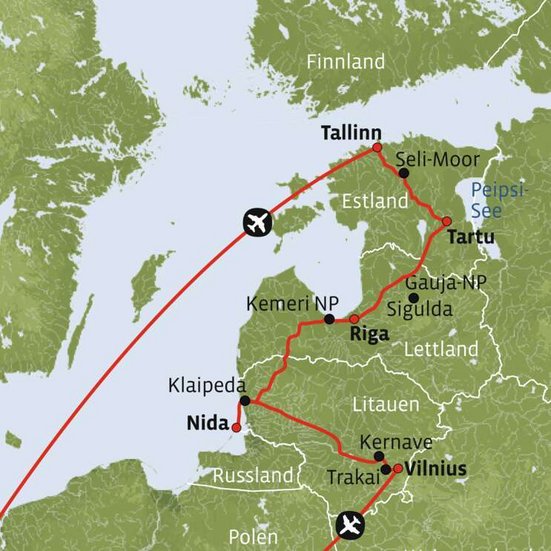Sie fahren in die erste bekannte Hauptstadt Litauens Kernave: Sie umfasst den Neris-Regionalpark, den Sie auf einer ca. 6 km langen Wanderung entdecken. Archäologische Ausgrabungen und die eindrucksvolle Landschaft machen Kernave zum UNESCO-Weltkulturerbe. Dann ist es nur noch ein Katzensprung in die litauische Hauptstadt: Willkommen in Vilnius! Zwei Übernachtungen im Zentrum. (F)