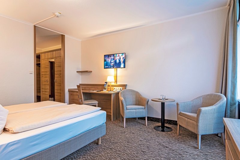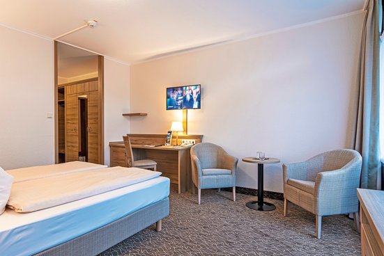 - 21-25 qm, Schreibtisch, Dusche oder Badewanne, Haartrockner, Kosmetikspiegel, Minibar, Safe, 1 TV (Sat-TV), Balkon
