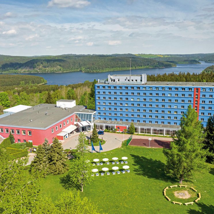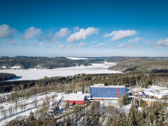 Das Hotel Am Bühl – Das Blaue Wunder in Eibenstock ist der ideale Rückzugsort für erholungsreiche Tage im Erzgebirge. Auf einer Anhöhe gelegen haben Sie von hier Blick auf die Talsperre Eibenstock, die größte Trinkwassertalsperre Sachsens, die auch „Erzgebirgsmeer“ genannt wird. Das familienfreundliche Ferienhotel biete vielseitige Freizeit- & Erlebnisangebote.