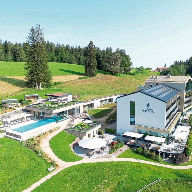 Unweit des Bodensees, nahe der deutsch-österreichischen Grenze gelegen, befindet sich dieses Hotel in einzigartiger Natur und bietet einen tollen Ausblick auf die Allgäuer Alpen.