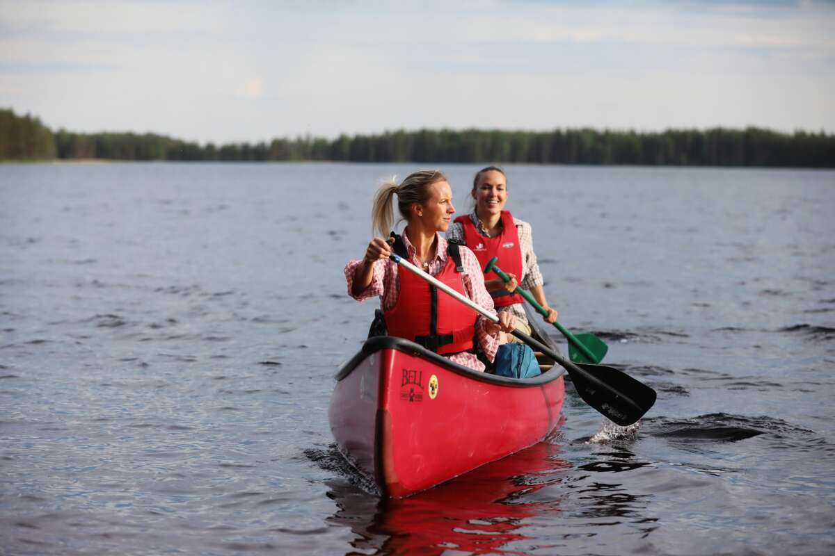 Rein ins Abenteuer! Blockhausferien in Finnland heisst Natur erleben. Zum Beispiel mit dem Ruderboot den See erkunden oder zu Fuss auf einer Wanderung, den Nationalpark erkunden. Die Wanderwege sind gut markiert und führen durch zauberhafte Wälder immer wieder ans Ufer eines Sees. Lust auf ein kleines Bad?