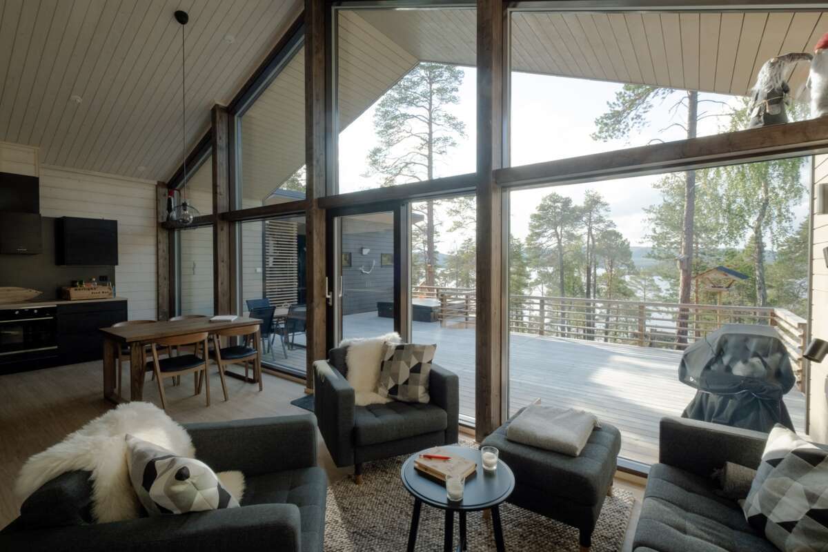 Eines der Ferienhäuser hat zwei Schlafzimmer während das Doppelhaus jeweils über ein Schlafzimmer sowie eine Loft mit zwei zusätzlichen Betten verfügt. Die Ferienhäuser bestechen durch den grossen und offenen Wohnbereich mit spektakulärer Fensterfront und Sicht auf den See. Die Innen- und Aussensauna mit Hot-Pot sowie die grosszügige Terrasse runden Ihr Ferienhauserlebnis im Herzen Lapplands ab.