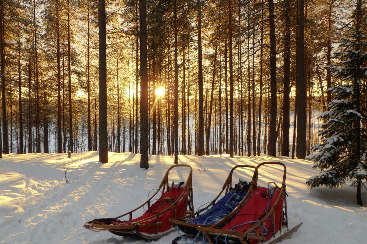 Bepacken der Schlitten und Aufbruch ins zauberhafte Nordkarelien. Auf dem Pfad fahren Sie über sanfte Hügel und weite Seen zur rustikalen Wildnishütte Aittokoski oder zum Ferienhaus Ruunaa, wo Sie übernachten. Am 5. Tag geht es nach dem morgendlichen Füttern von der Hütte aus zurück auf die Trails. Nach einer ca. 2–4-stündigen Schlittenfahrt erreichen Sie am Nachmittag die Lodge.
