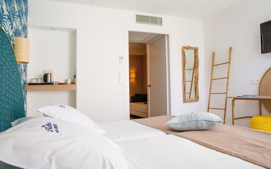Mediterrane Momente genießen in diesem Strandhotel inmitten der schönen Landschaft Okzitaniens vor der Kulisse der Pyrenäen. Das Interieur empfängt Sie in den Farben Weiß und Blau. Das Sand Spa lädt zur Entspannung ein.