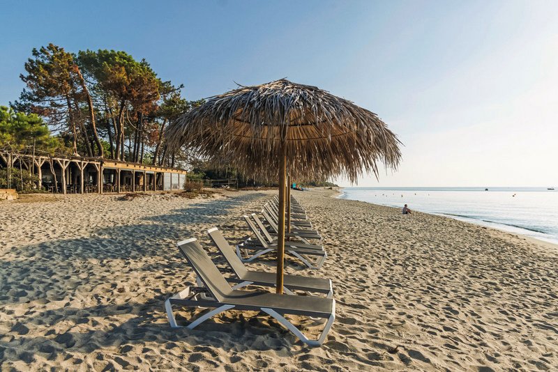 Sonne & Strand, Wellen & Sand – Erholung so weit das Auge reicht am 20 km langen Strand von Pinia. Wohnen unter Pinien, baden im kristallklaren Wasser, spielen im Sand: bester Familienspaß!
