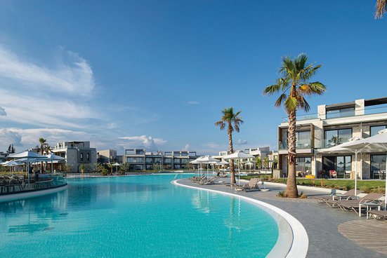 Neues Luxusresort direkt am Strand zwischen Nea Moudania und Potidea auf der Kassandra. Die Lobby erstrahlt in hellem Glanz, stilvoll und edel ist das Interieur. Im Fitnesscenter auspowern, im Spa entspannen: wie es beliebt!