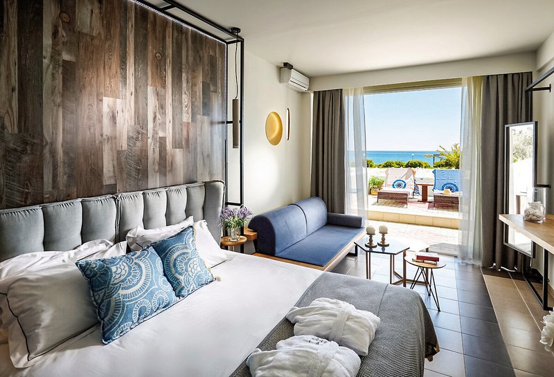 - 31-35 qm, Juniorsuite, Deluxe, Meerblick, Sitzecke, Dusche oder Badewanne, Bademantel, Badeslipper, Haartrockner, Fliesen, Klimaanlage, Minibar kostenpflichtig, Safe (kostenpflichtig), TV (Sat-TV), Kaffeemaschine, Balkon, Privatpool
