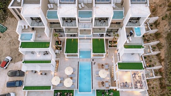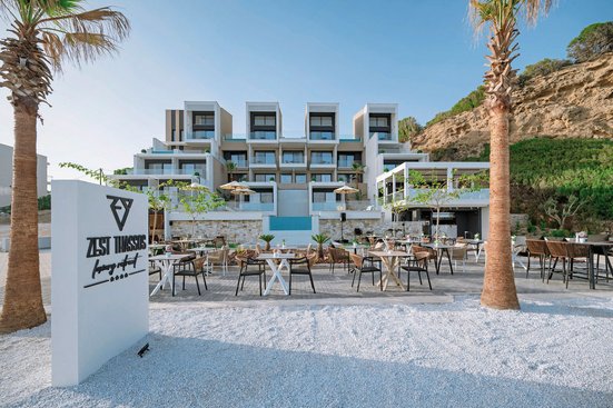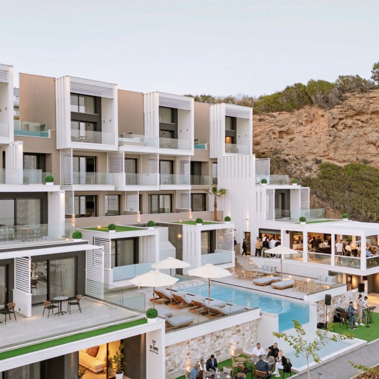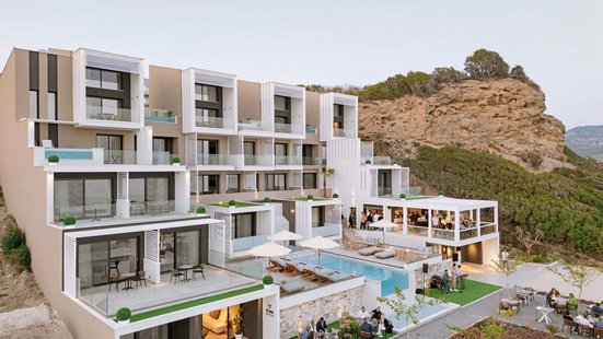 Zeitgenössisches Design trifft zeitlosen Charme. Auf einem Hügel oberhalb des Strandes gelegen, eröffnet sich von diesem neu erbauten Hotel aus ein wunderschöner Panoramablick auf die Ägäis und die Küstenlandschaft. Genießen!