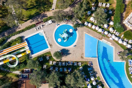 - Kinderpool (außen): Süßwasser, 3 Wasserrutschen