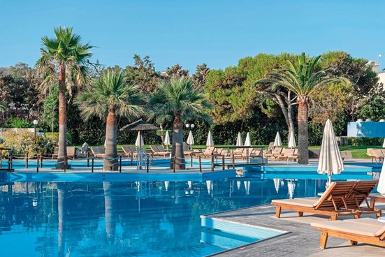 - 31-35 qm, Familien, Hauptgebäude, Meerblick, Poolblick, optisch getrennter Wohn-/Schlafraum, 1 Doppelbett, 2 Sofabetten, 1 Bad, Dusche oder Badewanne, WC, Bademantel, Haartrockner, Klimaanlage, individuell regulierbar, Minibar kostenpflichtig, Safe, 1 TV (Sat-TV), Kaffee/Tee, Balkon oder Terrasse, Kopfkissen-Menü, hochwertige Badartikel, bei Ankunft im Zimmer Wasser, Gebäck
