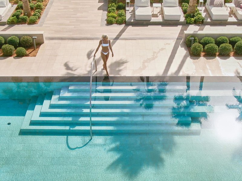 - 36-40 qm, Suite, Poolblick, 1 Doppelbett (Kingsize), 1 Bad, Dusche, WC, Bademantel, Badeslipper, Haartrockner, Kosmetikspiegel, Klimaanlage, Minibar, Safe, 1 TV, WLAN, Wasserkocher, Kaffeemaschine, Espressomaschine, Terrasse (möbliert), direkter Poolzugang