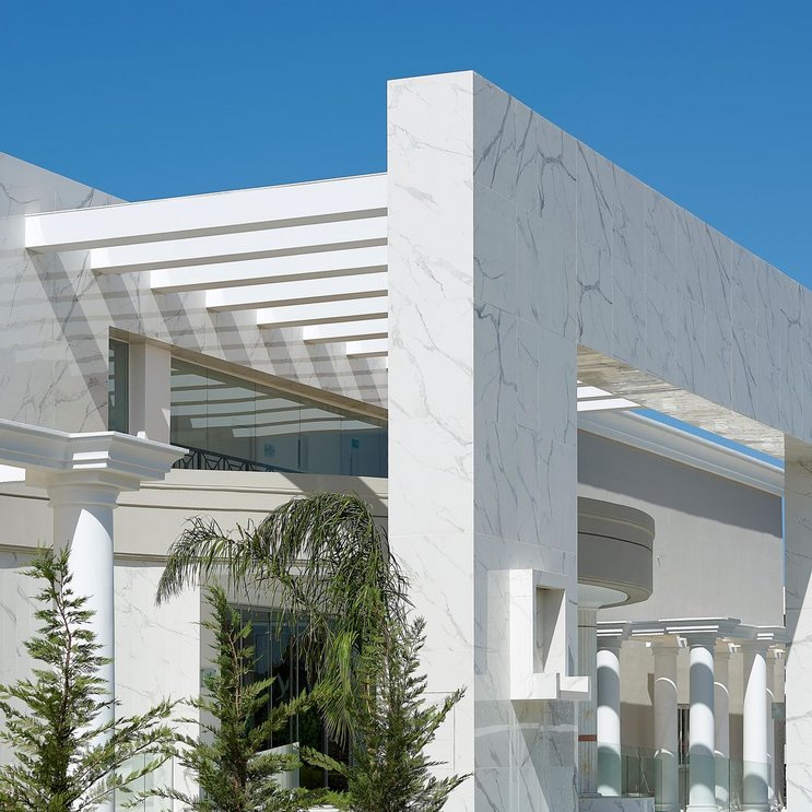 Strahlend weiß leuchtet dieser Urlaubspalast weithin und bietet sorglose Tage dank Alles inklusive. Das Freizeitangebot ist groß: Aqua-Aerobic, Pilates, Tennis, Yoga und mehr. Auch Kochkurse, Livemusik und kretische Folklore stehen auf dem Programm.