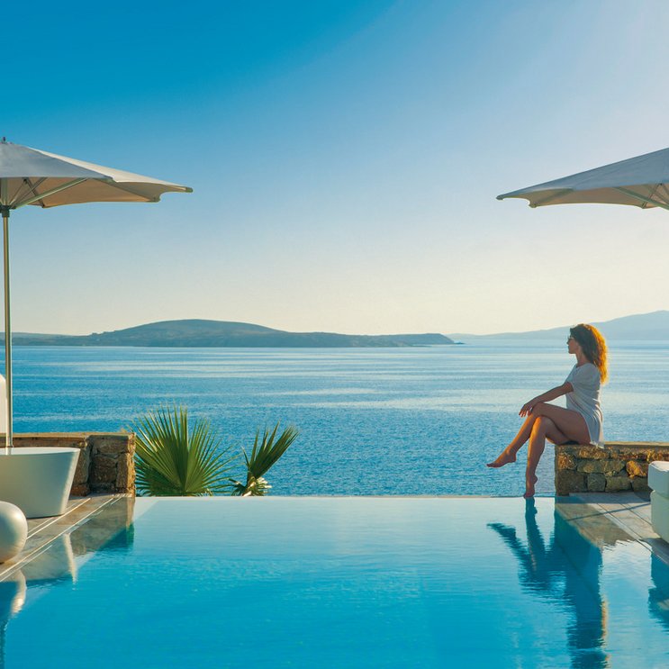Ganz im Einklang mit seiner herrlichen Umgebung fügt sich dieser Traum in Blau und Weiss in die grandiose Inselwelt der Kykladen und ist wie gemacht für einzigartige Momente und unvergessliche Ferienerlebnisse.