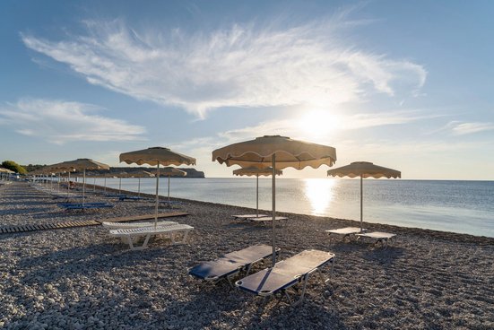 - Sandstrand: Sonnenschirme, Liegen, Strandtuch/Badetuch