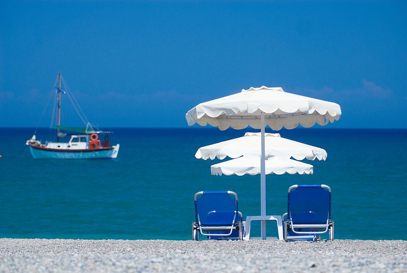 - Sand-/Kieselstrand: Badeschuhe empfohlen, Sonnenschirme (kostenpflichtig), Liegen (kostenpflichtig)