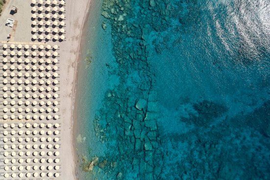 - Sand-/Kieselstrand: Sonnenschirme, Liegen, Strandtuch/Badetuch, Shuttleservice zum Strand (täglich)