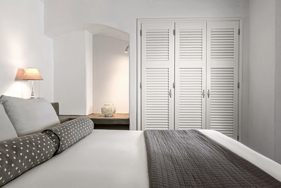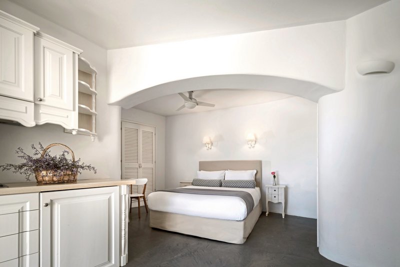 Stilvoll-elegant wohnen Sie in den Suiten und den Villen mit privatem Pool, umgeben von Weinbergen und Olivenhainen, mit atemberaubenden Blick auf die Ägäis und die kleinen Inseln Amafi und Amorgos. Ein Traum!
