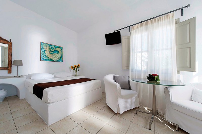 In Imerovigli strahlen die weißen Häuser vor schwarzem Vulkangestein. Sonnendurchflutet ist die gesamte Anlage der Gorgona Villas: Sie werden Ihre helle Freude haben!